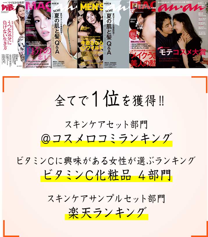 | @cosme 口コミランキング スキンケアセット部門第1位 ニキビケアに効果がある第1位 | 角質集中ケアマスク付き | 記載なし | GOSSIPS掲載 Poco'ce BEST BEAUTY AWARD 2019 |